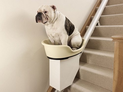 據龍豪市場特派員了解到,英國一家公司研制了一款寵物犬專用樓梯升降機,旨在幫助肥胖狗狗減輕爬樓的負擔,這個樓梯升降機將成為世界上首款寵物犬專用“電梯”。