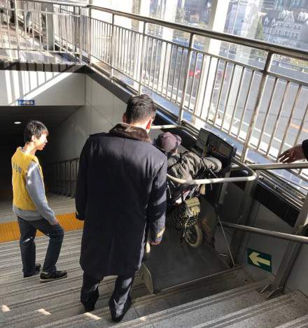 大連地鐵站殘疾人無(wú)障礙升降平臺(tái)、樓梯升降機(jī)、斜掛式輪椅升降平臺(tái)、主要為使用輪椅者提供上下樓梯的服務(wù),其一般結(jié)構(gòu)合理使用安全。為了防止平臺(tái)傾翻,使用二根導(dǎo)軌。斜掛式輪椅升降平臺(tái)主要由工作平臺(tái)、支承框架、保護(hù)護(hù)欄組成,主體是濟(jì)鋼結(jié)構(gòu)。工作平臺(tái)是升降機(jī)的工作部分,表面復(fù)有防滑濟(jì)鋼產(chǎn)材料。平臺(tái)的三個(gè)外向面都安裝有安全護(hù)板,當(dāng)平臺(tái)運(yùn)動(dòng)受阻時(shí),能使升降機(jī)停止運(yùn)動(dòng)。平臺(tái)在不使用時(shí)可以向上折疊,以減少占用空間。